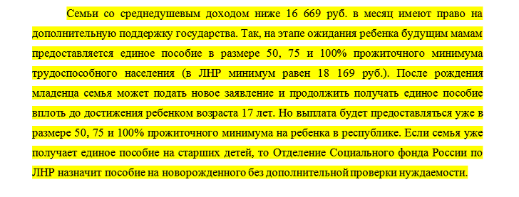 Семья с доходом ниже 16 669 руб. в месяц на одного человека имеет право на дополнительную поддержку государства. Скриншот ответа от Отделения Социального фонда России по ЛНР