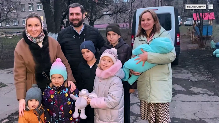 Встреча уполномоченного при президенте России по правам ребёнка Марии Львовой-Беловой с семьёй Гончаровых в марте 2025 года. Скриншот: тг-канал "Царьград ТВ"//t.me/tsargradtv/102402
