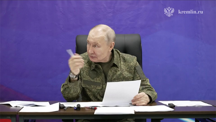 Верховный главнокомандующий вечером 30 ноября посетил один из пунктов управления Объединённой группировки войск. Скриншот видео: ТГ-канал Kremlin.ru
