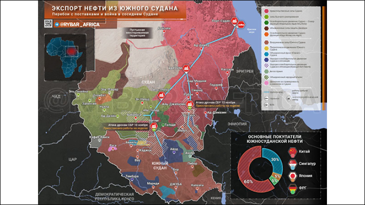 Начав относительно успешное наступление на СБР, главнокомандующий суданской армией поспешил отчитаться перед американским истеблишментом через деловую газету. Инфографика: аналитический центр "Рыбарь"