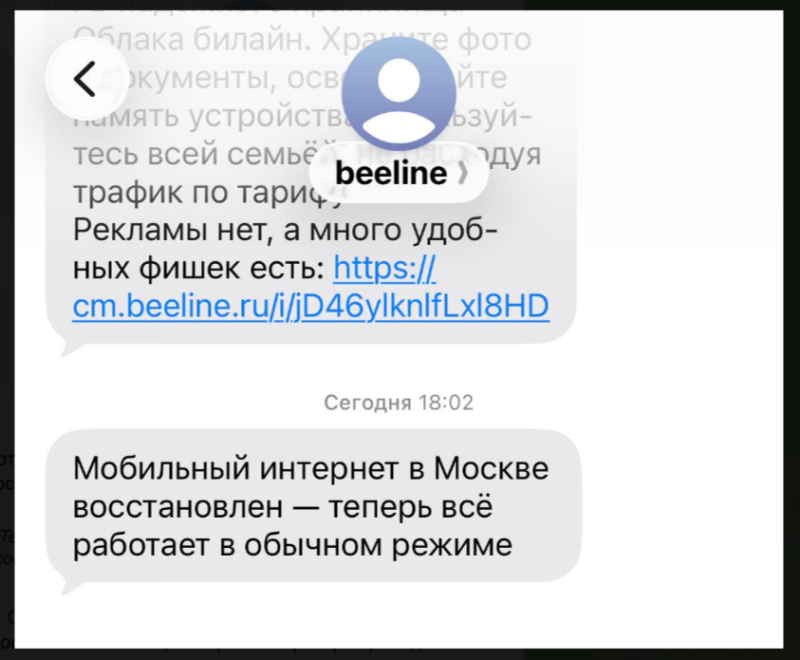 Мобильный интернет в Москве восстановлен - теперь всё работает в обычном режиме.