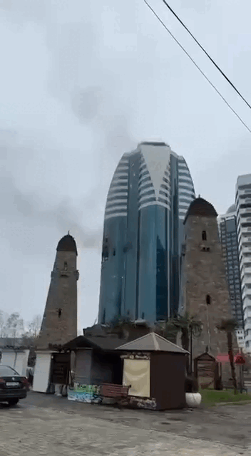Ударная волна разнесла фасад башни "Грозный-Сити" в Чечне, начался пожар: Что известно, кадры