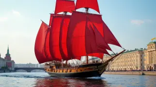 Традиционное шоу с бригантиной на Неве и концертом ежегодно собирает тысячи зрителей.